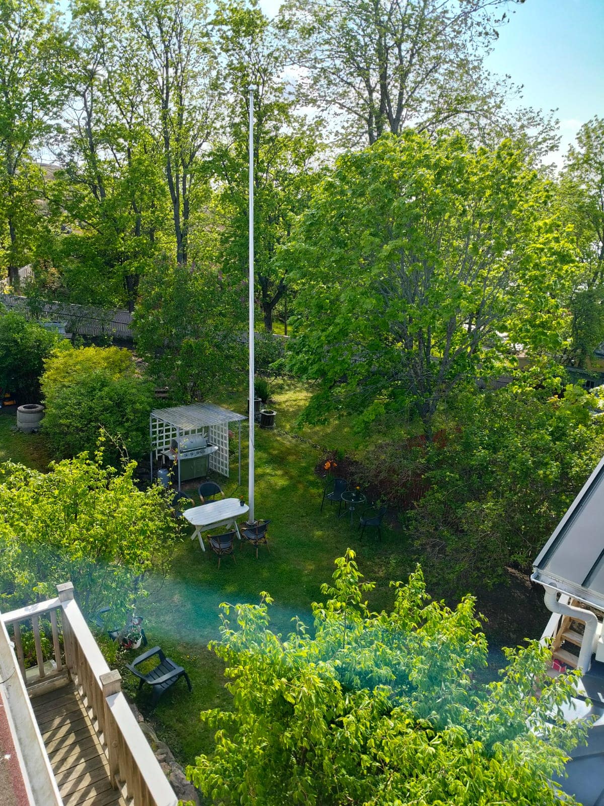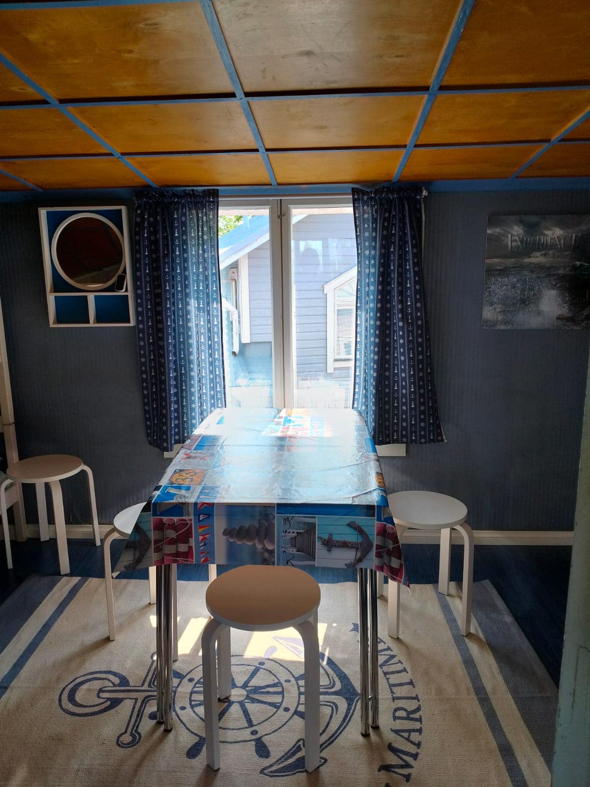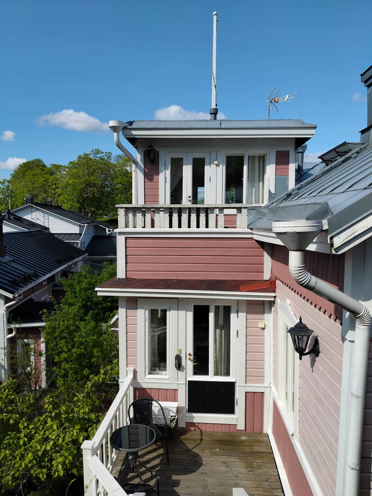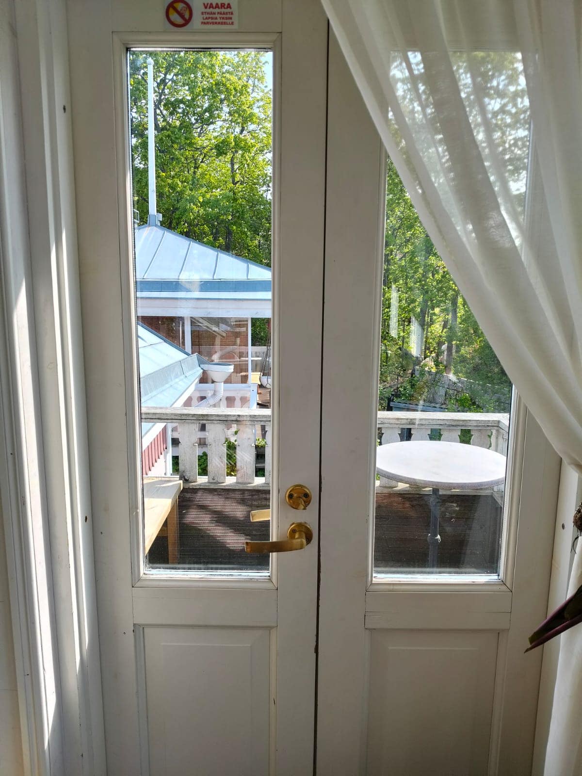 Rauhallinen, iso pihapiiri vanhoine istutuksineen ja kivetyksineen. Useita pöytäryhmiä. Voit istuskella pihalla lintujen laulua kuunnellen tai vaikka grillata ja nauttia Naantalin auringosta. Parkkipaikka löytyy.
