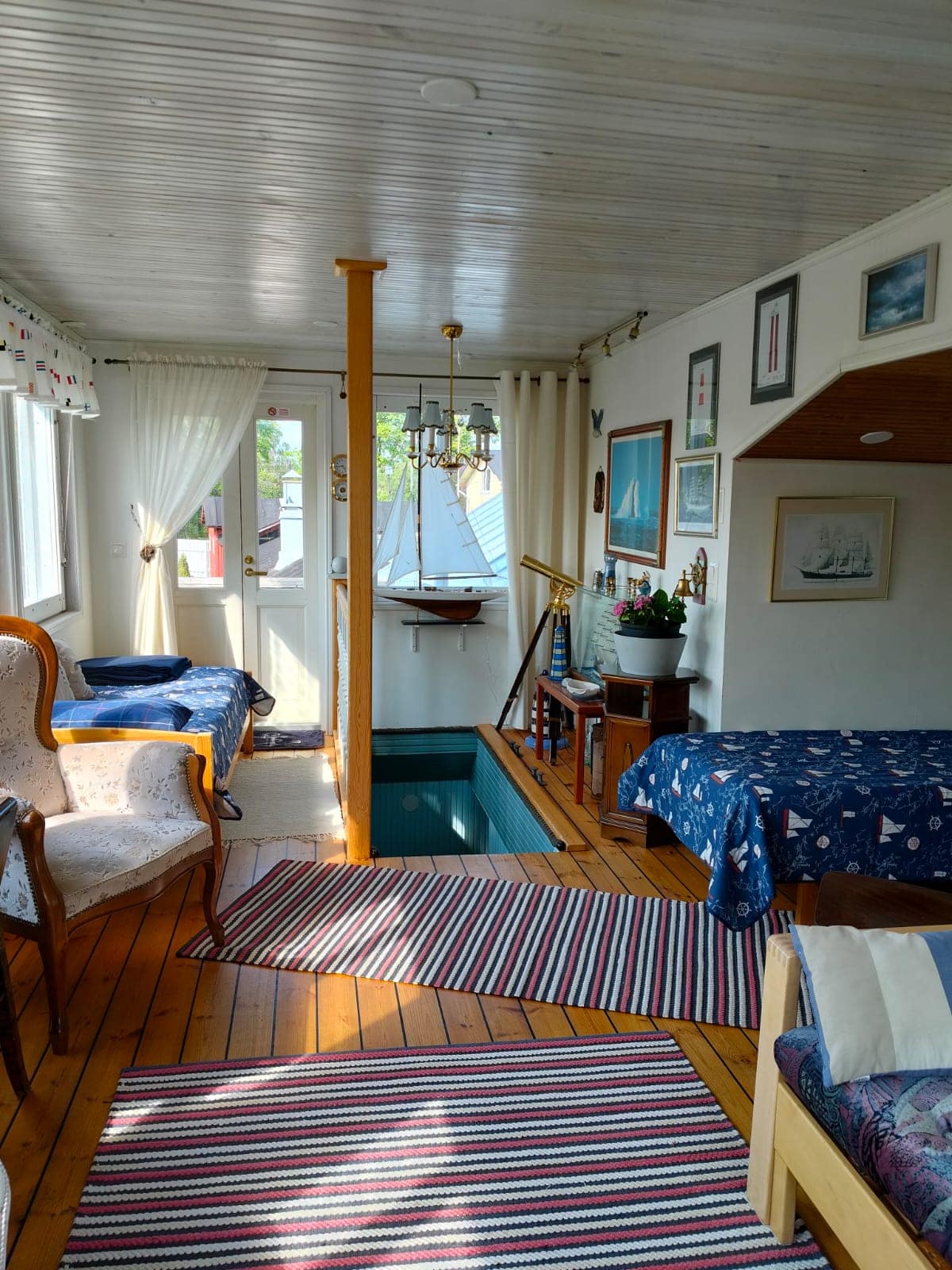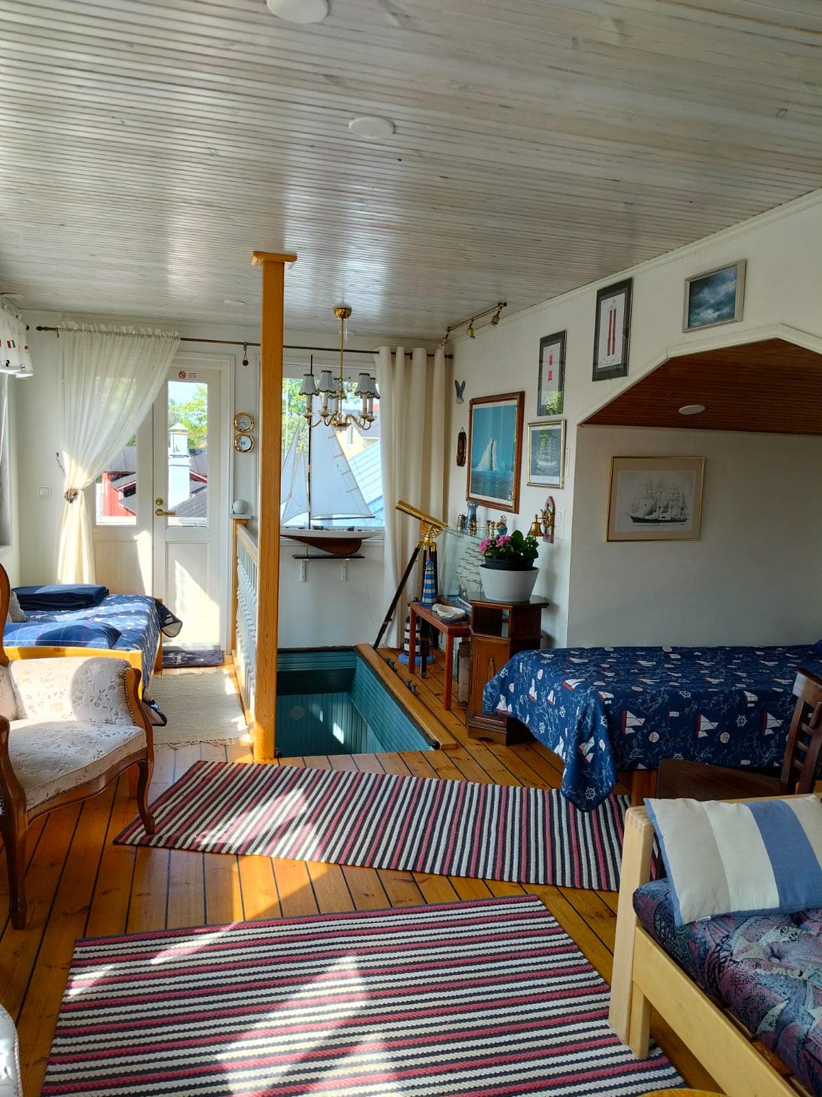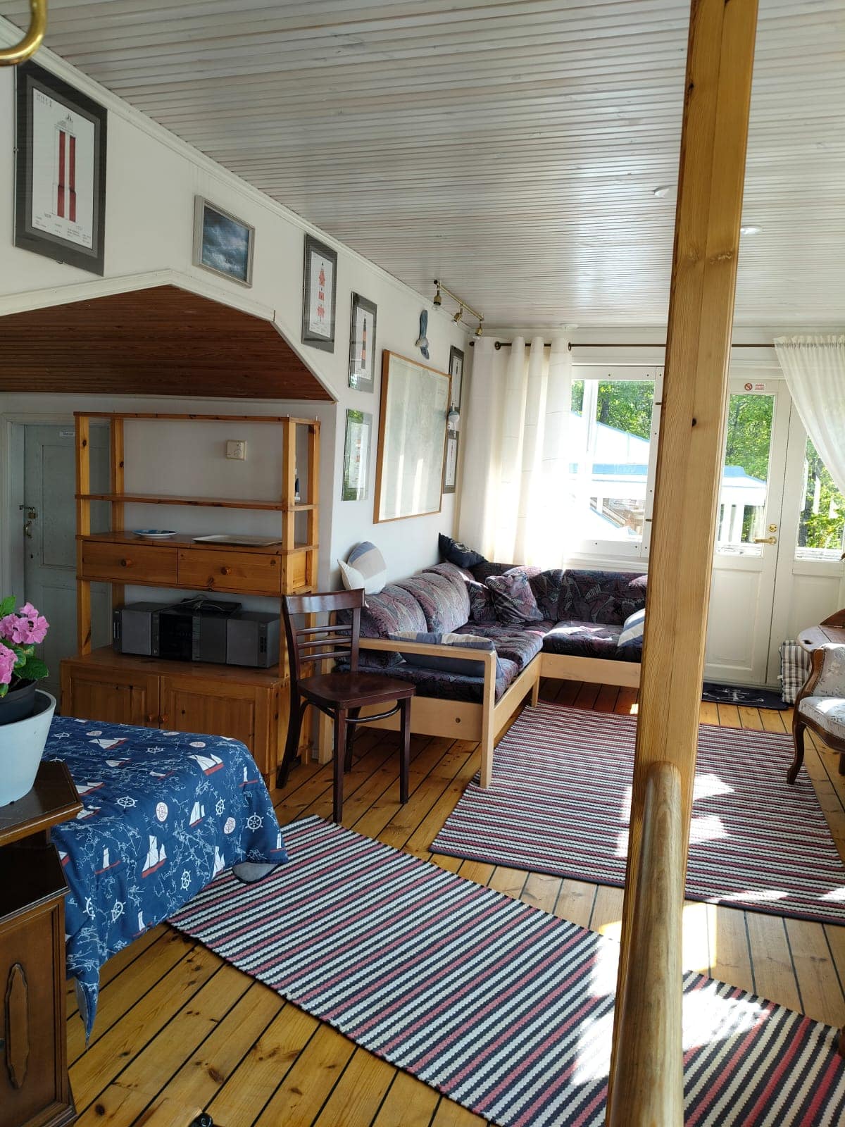 Iso olo-/makuuhuone: Parivuode, jotka saa myös erikseen, vauvansänky, tv. Huoneistossa on oma sisäänkäynti, wc / suihku sekä ilmalämpöpumppu. Ikkunoista näkyy Naantalin aukon veneliikenne, Kultaranta sekä Muumisaari.